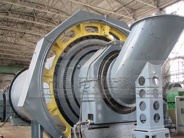 原煤由喂料設備進入到磨機的進料裝置中,溫度為300℃左右的熱風也通過進風管進入進料裝置,含有水分的原煤在此處就開始進行熱交換;當原煤進入磨機的烘干倉時,由于烘干倉內設有特制的揚料板將原煤揚起,使得原煤在此處進行強烈的熱交換而得到烘干,烘干后的煤塊通過設有揚料板的雙層隔倉板進入粉磨倉。粉磨倉內裝有研磨體(鋼球),煤塊在此倉內被粉碎、研磨成煤粉。在煤塊被粉碎的同時,由專用的引風機經過磨機的出料裝置將已粉碎的煤粉及氣體一同帶出磨機,較粗的顆粒會經過出料裝置的返料螺旋返回到粉磨倉內進行再次粉磨。